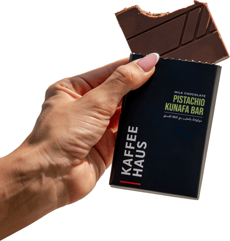 Discover the art of indulgence with our Bean-to-Bar Pistachio Kunafa Chocolate, a luxurious Arabian creation that unites tradition and innovation.